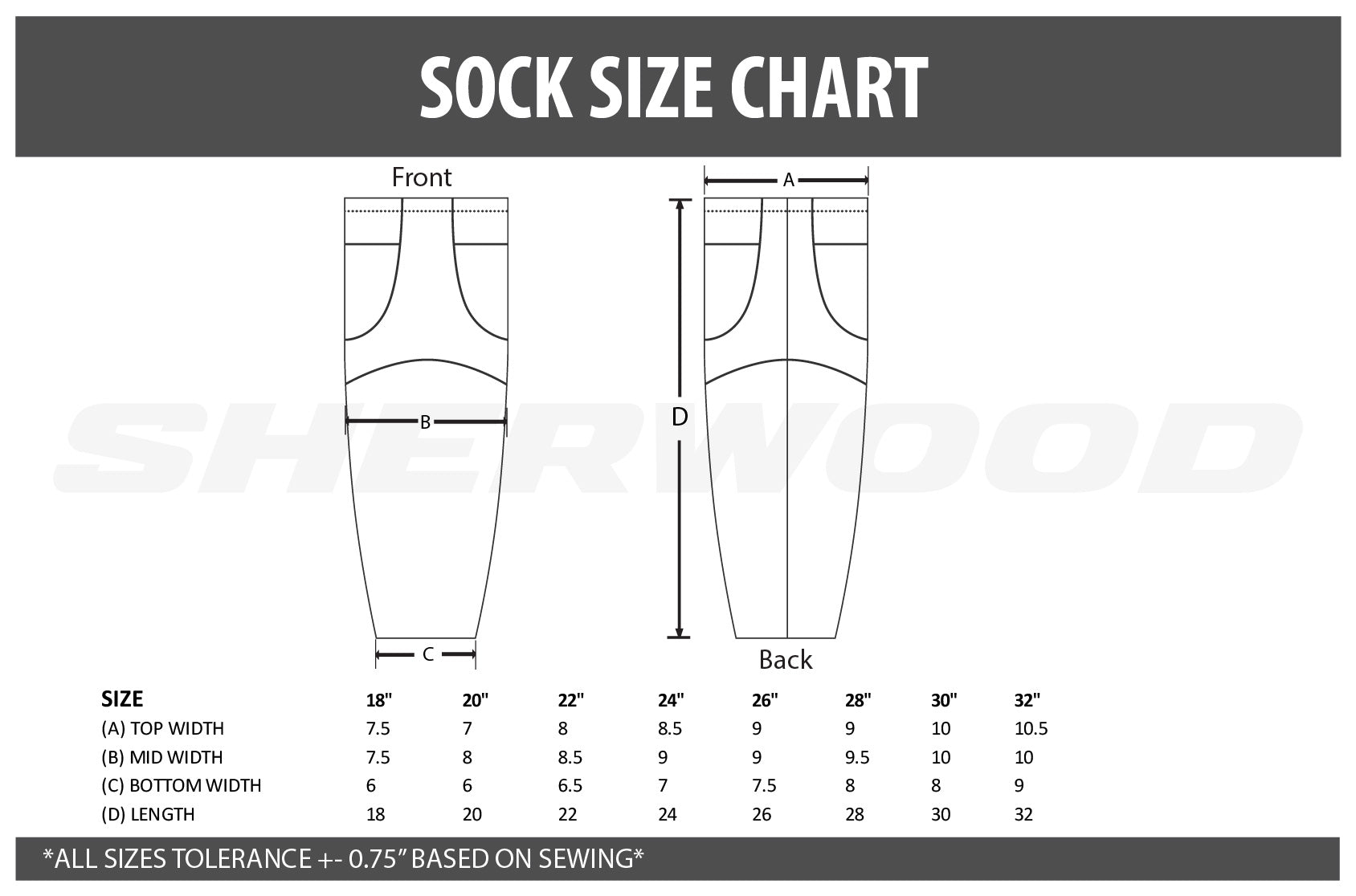 Sock Size Shin Guard Player Height Top Opening Bottom Opening 18" 8" - 9" 3'4" - 4'1" 7.25" 4.5" 20" 9" - 10" 3'8" - 4'6" 7.5" 4.5" 22" 10" - 11" 4' - 4'8" 8" 4.5" 24" 11" - 12" 4'4" - 5'2" 8.5" 4.5" 26" 12" - 13" 4'8" - 5'6" 9" 4.5" 28" 13" - 14" 5'1" - 5'8" 9.5" 4.5" 30" 14" - 16" 5'6" - 6'2" 10" 4.5" 32" 17" 6'2"+ 11" 4.5"